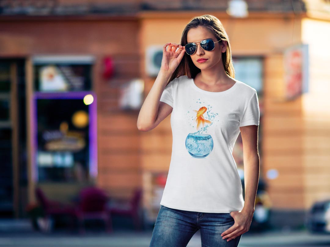 tシャツ レディース 半袖 白地 デザイン S M L XL Tシャツ ティーシャツ T shirt 006575 きんぎょ 写真 金魚
