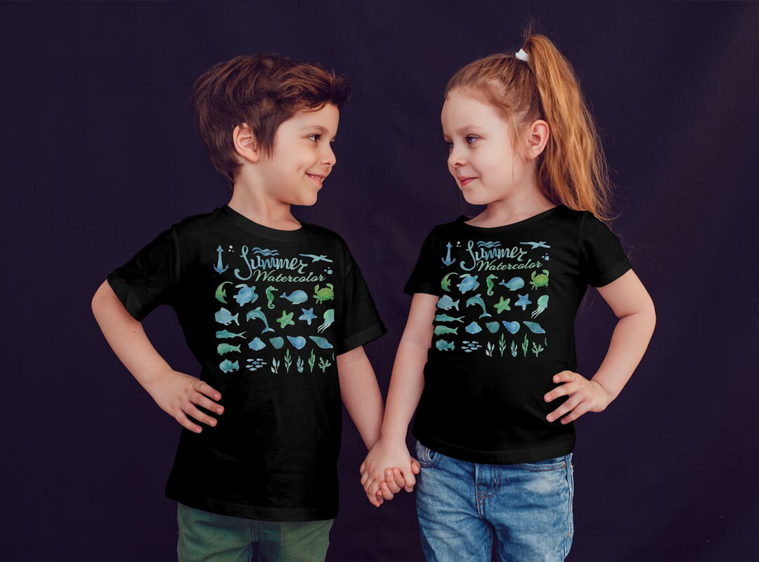 tシャツ キッズ 半袖 黒地 ブラック デザイン 90 100 110 120 130 140 150 Tシャツ ティーシャツ T shirt 013976 海 夏 魚