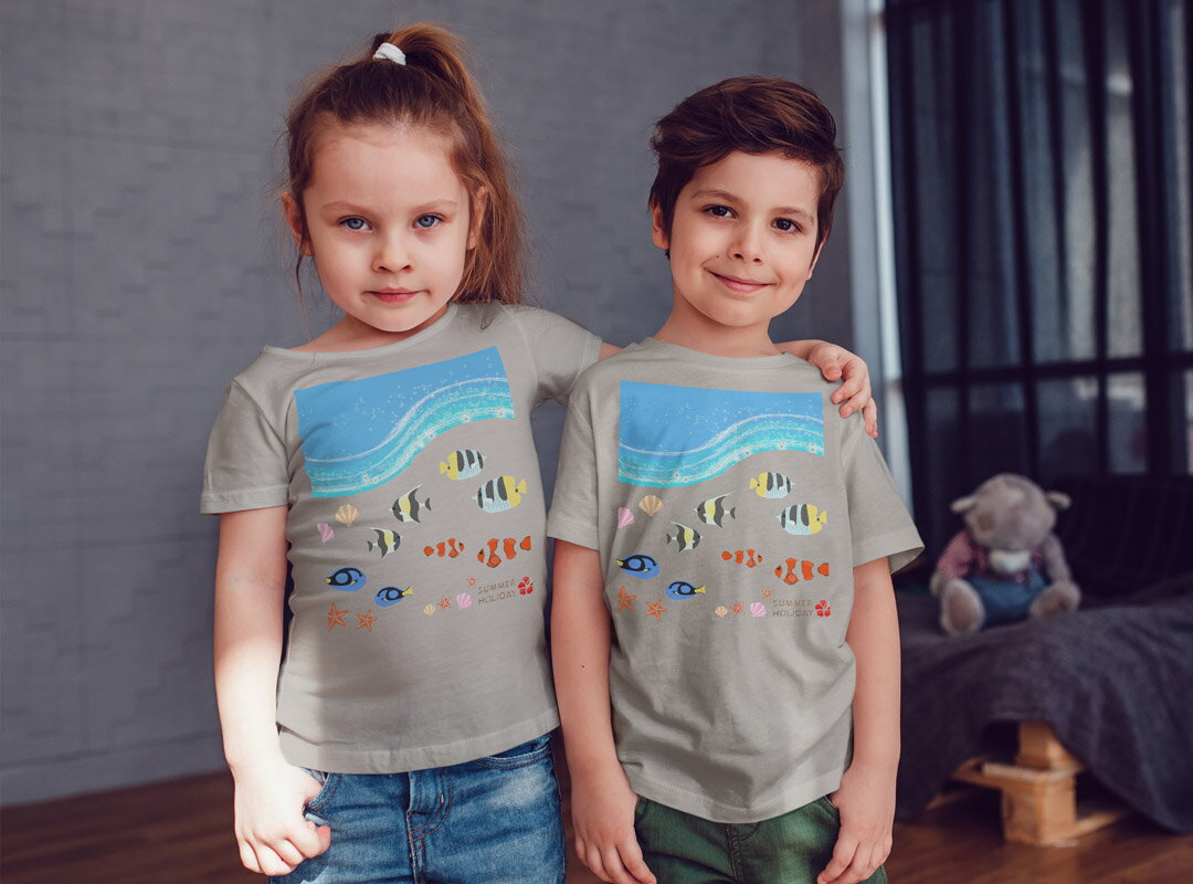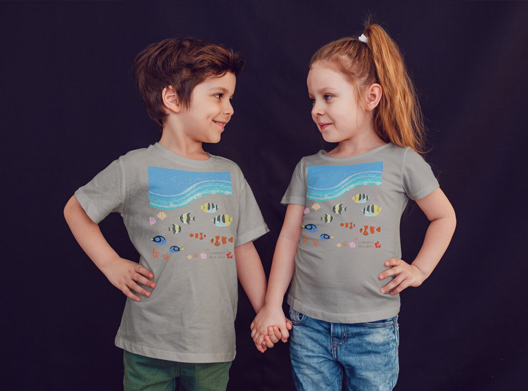 選べる20カラー tシャツ キッズ 半袖 黒地 ブラック デザイン 90 100 110 120 130 140 150 160 Tシャツ ティーシャツ T shirt 013753 海 夏 魚