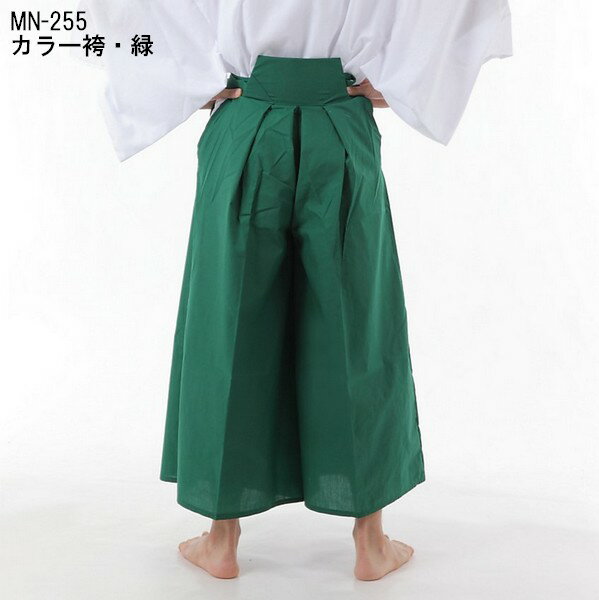 ◆詳細◆ 内容:腰板&ひも付きカラー袴(緑) 素材:ポリエステル65%・コットン35%、洗濯可 ※色落ち・色移りがありますので、洗濯は単品で行なってください。